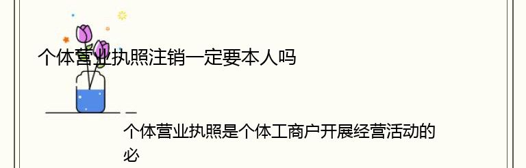 个体营业执照是个体工商户开展经营活动的必备证件,但是在某些情况下,个体工商户可能需要注销营业执照。那么,个体营业执照注销一定要本人吗?