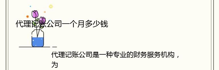 那么,代理记账公司一个月多少钱呢?这个问题并没有一个固定的答案,因为不同的代理记账公司收费标准不同,而且还会受到企业规模、业务复杂度、服务内容等因素的影响。