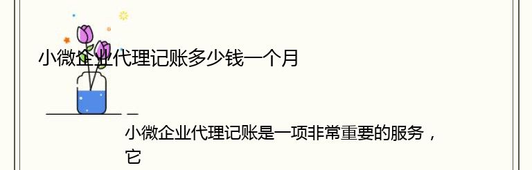 小微企业代理记账是一项非常重要的服务,它可以帮助企业管理好财务,提高财务管理的效率和准确性。但是,很多小微企业在选择代理记账服务时,都会关注一个问题:代理记账多少钱一个月?