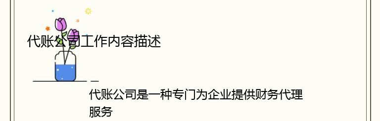 代账公司是一种专门为企业提供财务代理服务的机构。其主要工作是为企业客户提供会计、税务、财务等方面的代理服务,帮助企业客户解决财务管理方面的问题。