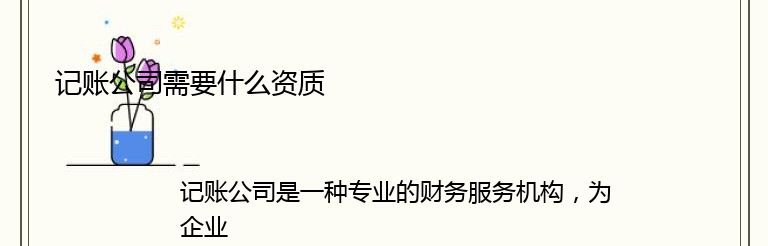 记账公司是一种专业的财务服务机构,为企业提供会计、税务、财务等方面的服务。在成立记账公司之前,需要了解记账公司需要什么资质。