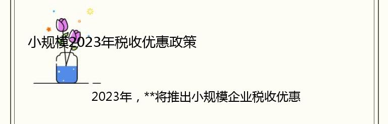 2023年,**将推出小规模企业税收优惠政策,旨在支持和促进小规模企业的发展。