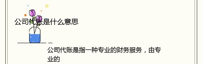 公司代账是指一种专业的财务服务,由专业的代账公司为企业提供财务管理、会计核算、税务申报等一系列财务服务。这种服务可以帮助企业节省时间和精力,让企业专注于自己的核心业务,同时也可以避免因为财务管理不当而导致的风险。