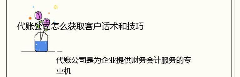 代账公司是为企业提供财务会计服务的专业机构,其主要业务是为客户处理财务账务、纳税申报、财务分析等工作。在代账公司的日常工作中,获取客户是非常重要的一环。下面我们来了解一下代账公司如何获取客户的话术和技巧。