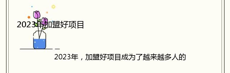 2023年,加盟好项目成为了越来越多人的选择。在这个充满机遇和挑战的时代,选择一个好的加盟项目,可以让你在创业的道路上少走弯路,更快地实现财富自由。