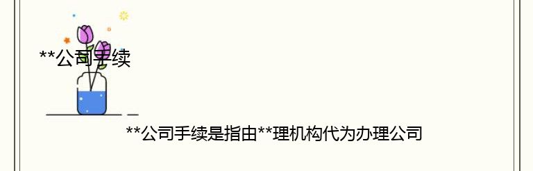 **公司手续是指由**理机构代为办理公司注册相关手续的服务。这种服务的出现,为那些没有时间、经验或者不想亲自办理公司注册手续的人提供了便利。