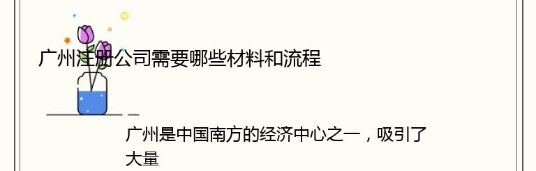 广州是中国南方的经济中心之一,吸引了大量的企业和投资者。如果您想在广州注册一家公司,以下是您需要了解的材料和流程。