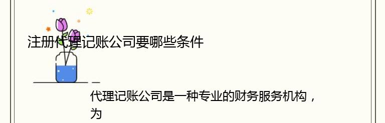 代理记账公司是一种专业的财务服务机构,为企业提供会计、税务、财务等方面的代理服务。在中国,代理记账公司的发展越来越受到重视,成为了企业财务管理的重要组成部分。那么,注册代理记账公司需要哪些条件呢?