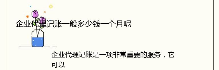 企业代理记账是一项非常重要的服务,它可以帮助企业管理好财务,提高财务管理的效率和准确性。但是,很多企业对于代理记账的费用并不是很了解,不知道一般多少钱一个月。