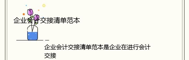 总之,企业会计交接清单范本是企业进行会计交接时的重要工具,它可以帮助企业确保会计工作的顺利进行,避免出现遗漏或错误。企业应该建立完善的会计制度和内部控制制度,加强对会计人员的培训和管理,提高会计工作的规范和准确性。