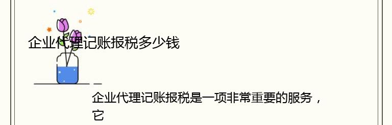 企业代理记账报税是一项非常重要的服务,它可以帮助企业在财务方面更加专业和高效。但是,很多企业在选择代理记账报税服务时,都会关注一个问题:多少钱?