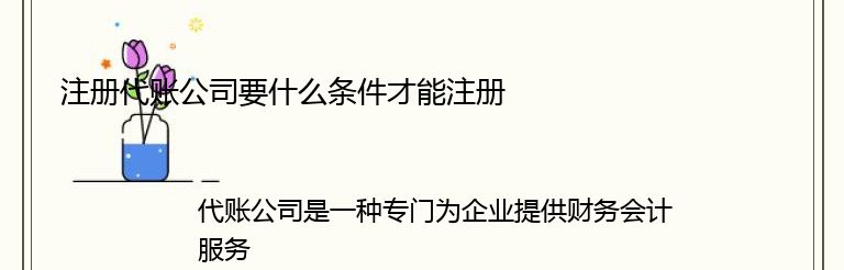 代账公司是一种专门为企业提供财务会计服务的机构,随着市场需求的增加,代账公司的数量也在不断增加。如果你想要注册一家代账公司,那么你需要满足以下条件:
