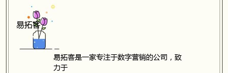 易拓客是一家专注于数字营销的公司,致力于为客户提供全方位的数字营销解决方案。我们的服务涵盖了搜索引擎优化、搜索引擎营销、社交媒体营销、内容营销、电子邮件营销等多个领域。
