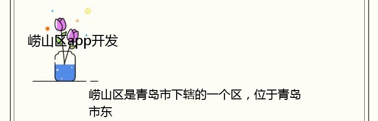 崂山区是青岛市下辖的一个区,位于青岛市东南部,是青岛市的重要组成部分。为了更好地服务崂山区的居民和游客,崂山区**开发了一款名为“崂山区APP”的手机应用程序。