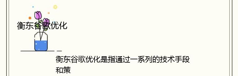 总之,衡东谷歌优化是一项非常重要的工作,对于提高网站的知名度和影响力,吸引更多的流量和用户,具有非常重要的作用。希望衡东的网站能够重视谷歌优化工作,不断提升自身的竞争力和影响力。