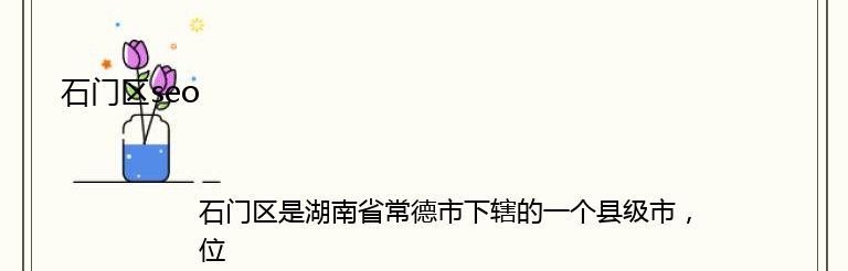 石门区是湖南省常德市下辖的一个县级市,位于湖南省南部,是湖南省的重要旅游城市之一。石门区拥有得天独厚的自然资源和独特的人文景观,是一个充满活力和发展潜力的地方。
