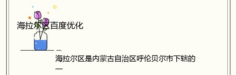 海拉尔区是内蒙古自治区呼伦贝尔市下辖的一个区,位于呼伦贝尔市中心地带,是呼伦贝尔市政治、经济、文化中心。随着互联网的发展,越来越多的企业开始关注海拉尔区的百度优化,希望能够在搜索引擎中获得更好的排名。