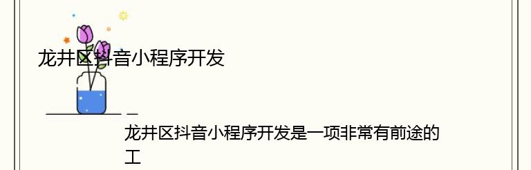 龙井区抖音小程序开发是一项非常有前途的工作。随着抖音的普及,越来越多的人开始使用抖音小程序。而龙井区作为一个经济发达的地区,抖音小程序的开发也越来越受到重视。