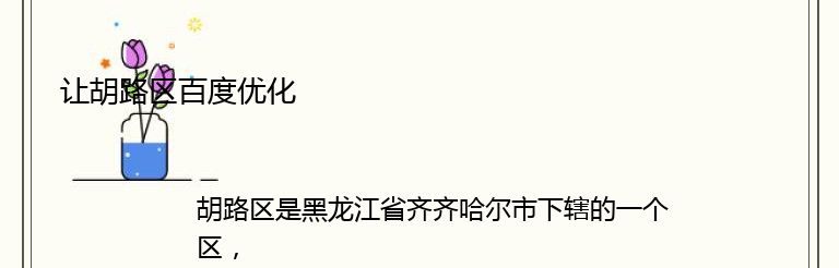 胡路区是黑龙江省齐齐哈尔市下辖的一个区,位于市区东南部,是市区的重要组成部分。为了更好地推广和宣传胡路区,让更多的人了解和认识这个美丽的地方,我们需要进行百度优化。
