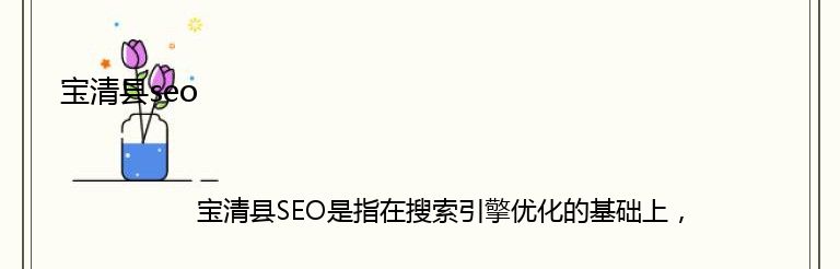 宝清县SEO是指在搜索引擎优化的基础上,针对宝清县地区的特点和需求,进行网站优化的一种策略。随着互联网的发展,越来越多的企业开始意识到SEO的重要性,而宝清县SEO则是在这个背景下应运而生。