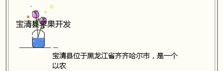 宝清县位于黑龙江省齐齐哈尔市,是一个以农业为主的县城。其中,苹果种植是宝清县的一大特色。