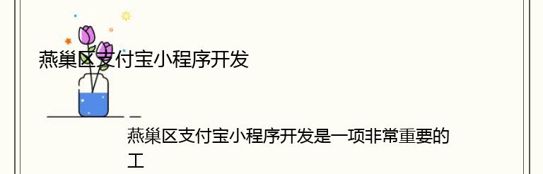 总之,燕巢区支付宝小程序开发是一项非常重要的工作,它可以为商家、居民和整个社会带来诸多好处。我们相信,在开发者的努力下,燕巢区支付宝小程序一定会取得更加优异的成绩。