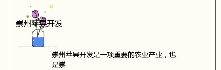 崇州苹果开发是一项重要的农业产业,也是崇州市的一大特色。崇州市位于四川盆地西南部,气候温和,土地肥沃,适宜果树生长。其中,苹果种植面积较大,品质也较为优良。