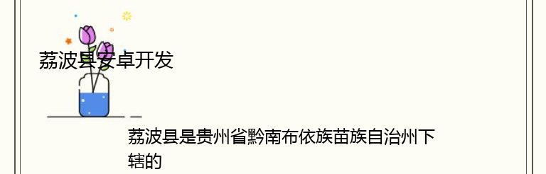 荔波县是贵州省黔南布依族苗族自治州下辖的一个县,位于贵州省南部。近年来,随着移动互联网的普及和发展,安卓开发成为了一项备受关注的技术。荔波县也不例外,越来越多的人开始关注和学习安卓开发。