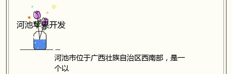 河池市位于广西壮族自治区西南部,是一个以农业为主的城市。其中,苹果种植业是河池市的重要支柱产业之一。