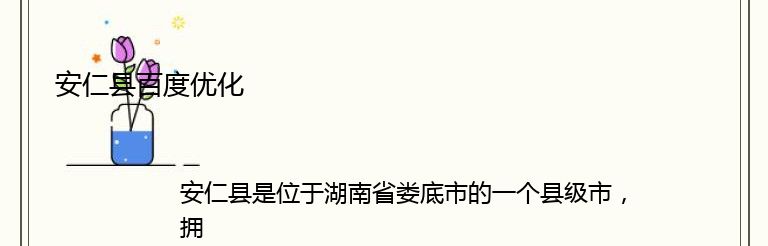 安仁县是位于湖南省娄底市的一个县级市,拥有着悠久的历史和文化底蕴。作为一个旅游胜地,安仁县吸引了大量的游客前来观光旅游。然而,对于许多企业来说,如何在百度搜索引擎中获得更高的排名,成为了一个重要的问题。