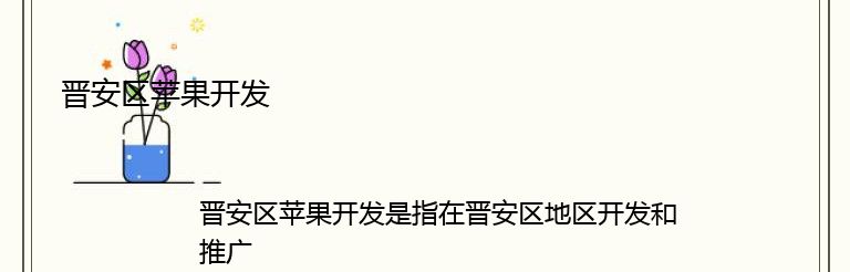 晋安区苹果开发是指在晋安区地区开发和推广苹果产品的过程。随着晋安区经济的不断发展,苹果开发成为了该地区的一个重要产业。