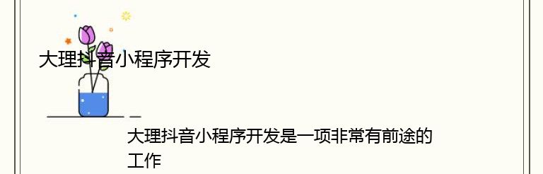大理抖音小程序开发是一项非常有前途的工作。随着抖音的普及,越来越多的人开始使用抖音小程序。而大理作为一个旅游城市,吸引了大量的游客,因此开发一款适合大理市场的抖音小程序是非常有必要的。
