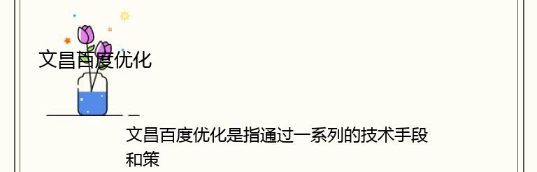 文昌百度优化是指通过一系列的技术手段和策略,提高文昌网站在百度搜索引擎中的排名,从而获得更多的流量和曝光度。随着互联网的发展,越来越多的企业和个人开始意识到了网站优化的重要性,而文昌百度优化则是其中的一个重要方面。