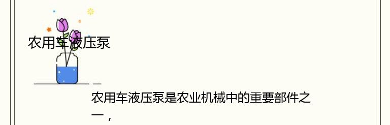 总之,农用车液压泵是农业机械中不可或缺的部件,它的选型和维护保养对农用车的工作效率和安全性都有着重要的影响。因此,我们应该认真选择液压泵,科学使用和维护液压泵,为农业生产做出更大的贡献。