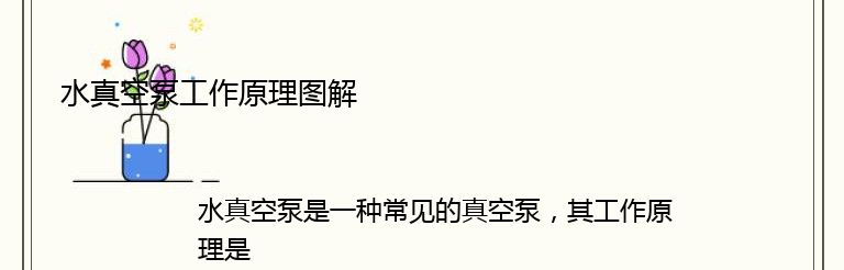 总之,水真空泵是一种常见的真空泵,其工作原理是利用水的流动和压力差来产生真空。在使用过程中需要注意水的流量和压力,以保证泵的正常工作。
