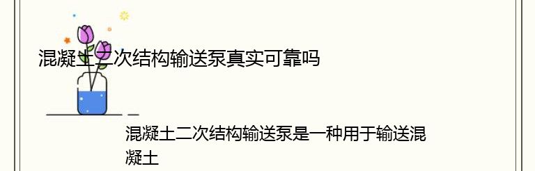 总之,混凝土二次结构输送泵是一种非常实用的设备,它可以大大提高施工效率,保证混凝土的质量,同时还具有很好的可靠性和安全性能。只要正确使用和维护,它就可以为施工工作带来很大的便利和效益。