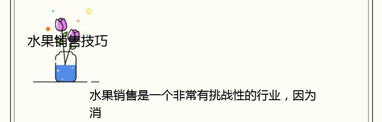 总之,水果销售是一个需要技巧和耐心的行业。如果你能掌握这些技巧,并提供优质的客户服务,你将能够吸引更多的顾客,并提高你的销售额。