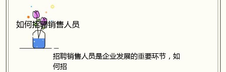 招聘销售人员是企业发展的重要环节,如何招聘到合适的销售人员,是每个企业都需要思考的问题。以下是一些招聘销售人员的建议: