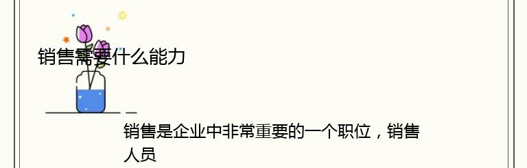 销售是企业中非常重要的一个职位,销售人员需要具备一定的能力才能够胜任这个职位。以下是销售人员需要具备的能力: