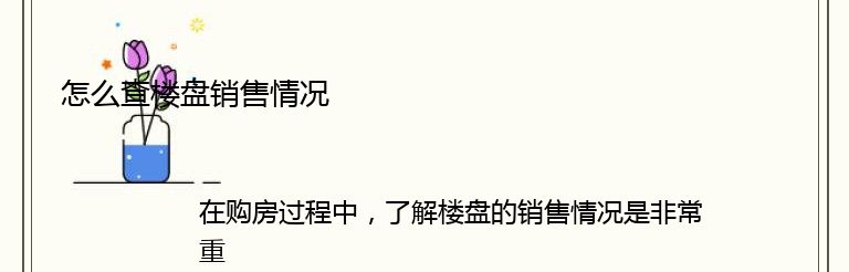 在购房过程中,了解楼盘的销售情况是非常重要的。这不仅可以帮助您做出更明智的购房决策,还可以帮助您更好地了解市场趋势和价格走势。
