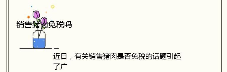 近日,有关销售猪肉是否免税的话题引起了广泛关注。一些人认为,猪肉是人们日常生活中必不可少的食品,应该免税销售,以减轻人们的经济负担。而另一些人则认为,猪肉是一种奢侈品,不应该享受免税待遇。