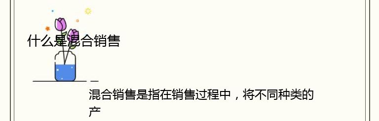 混合销售是指在销售过程中,将不同种类的产品或服务组合在一起,以提供给客户更多的选择和更好的购买体验。这种销售方式可以增加销售额和利润,同时也可以提高客户的满意度和忠诚度。