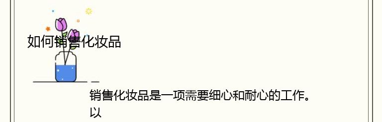 总之,销售化妆品需要细心和耐心。了解客户和产品,提供专业的建议,提供优惠和促销,以及提供良好的客户服务,这些都是成功销售化妆品的关键。