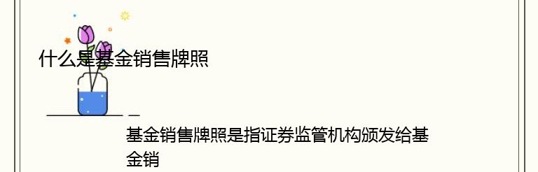 基金销售牌照是指证券监管机构颁发给基金销售机构的一种许可证,允许其在特定的范围内从事基金销售业务。在中国,基金销售牌照由中国证券监督管理委员会(简称“证监会”)颁发。