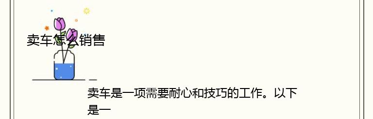 卖车是一项需要耐心和技巧的工作。以下是一些销售技巧,可以帮助您更快地卖出您的车: