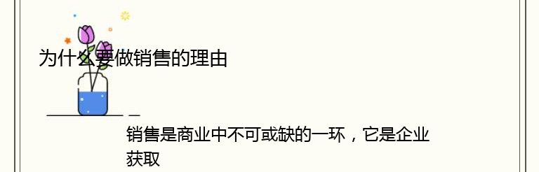 销售是商业中不可或缺的一环,它是企业获取利润的重要途径。以下是为什么要做销售的理由:
