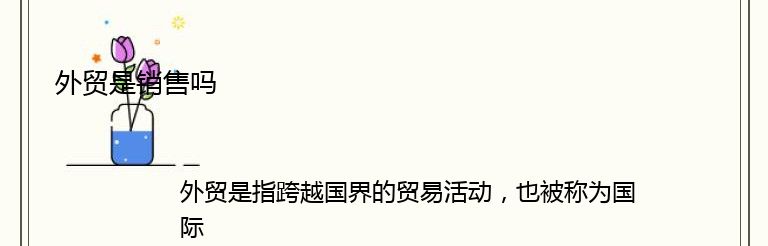 总之,外贸是一种跨越国界的贸易活动,其中商品和服务被交换和销售。虽然外贸销售与国内销售有很大的不同,但它仍然可以被视为销售的一种形式。在外贸销售中,销售人员需要具备更高的沟通技巧和语言能力,同时需要考虑到国际贸易的法律法规和文化差异。市场营销和品牌推广也是非常重要的。