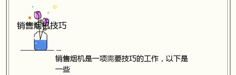 销售烟机是一项需要技巧的工作,以下是一些销售烟机的技巧:
