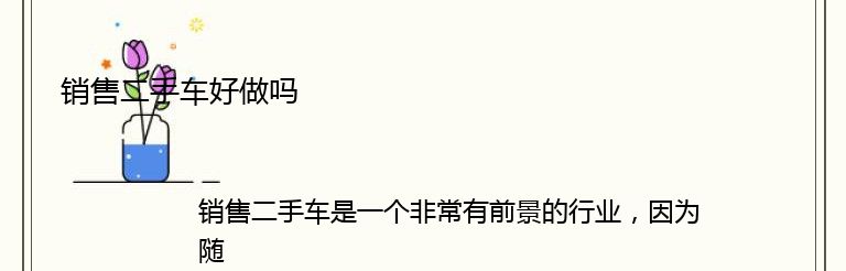 销售二手车是一个非常有前景的行业,因为随着人们生活水平的提高,越来越多的人开始购买汽车。而对于那些想要购买汽车但又不想花太多钱的人来说,二手车就成为了一个非常好的选择。