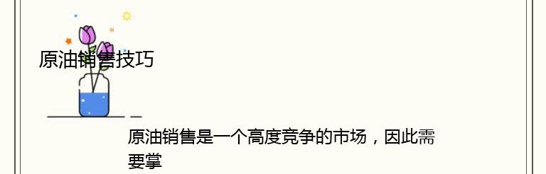 总之,原油销售是一个高度竞争的市场,需要掌握一些技巧来提高销售业绩。通过了解市场需求、建立良好的客户关系、提供优质的服务、了解竞争对手和提供定制化的解决方案,你可以在市场上获得更多的业务机会,并提高客户满意度。